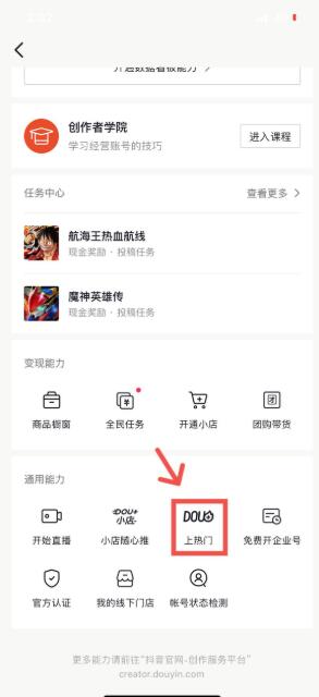 5.4 进去往下拉就会看到通用能力里面有个【上热门】的功能,如下图红圈