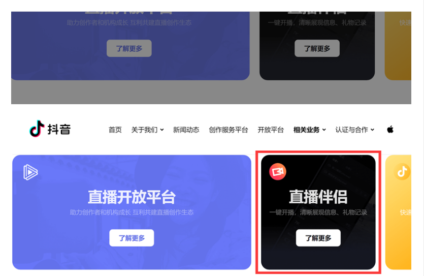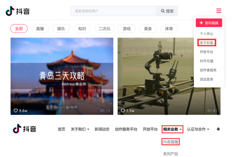 其次,在准备好必需的设备后,我们就开始操作了。首先,在电脑端登录抖音官网,点击右上角"关于抖音"之后点击"相关业务",找到直播伴侣软件,下载安装至我的电脑。接下来打开手机抖音APP,扫码登录账号。