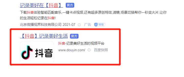 点击跳转出来中的第一条链接(非广告且标注有官方字样),进入抖音官方首页